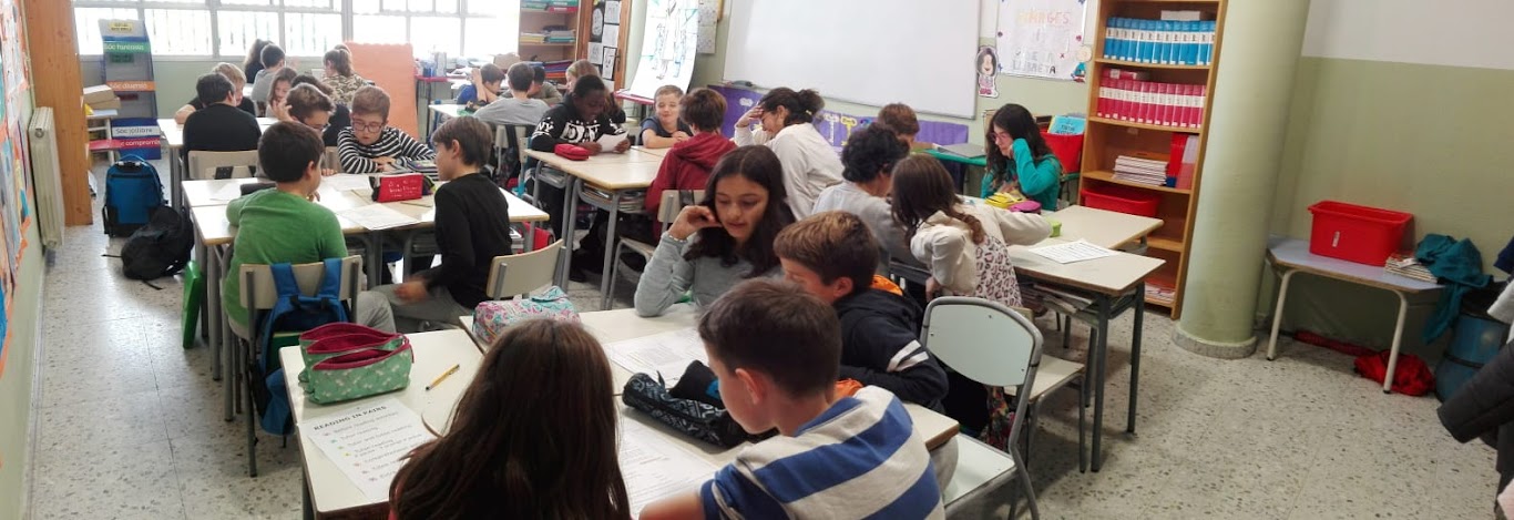 Aquest dijous a la tarda, les classes Llevant (5è) i Ponent (6è) han començat el programa Reading in pairs. Els alumnes de 6è són els tutors dels alumnes de 5è. A cada sessió, compartiran la lectura comprensiva d'un text en llengua anglesa; avui: "Gingerbread man".